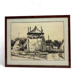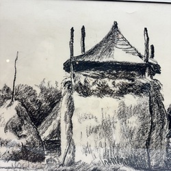 | Omschrijving | Krijttekening op papier, voorstelling van een hooibult. Rechtsonder gesigneerd Pit van Loo (Winsum 1905 – Haren 1991), gedateerd 1961. |