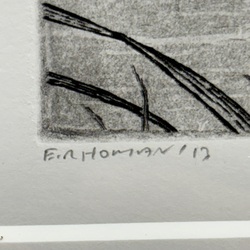 | Omschrijving | Ets op papier, voorstelling van een bootje in Fries waterlandschap. Linksonder gesigneerd Reinder Homan (Smilde, 1950), gedateerd 2013, oplage 18/200. |