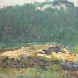 | Omschrijving | Een schilderij olieverf op doek. Landschap/ open plek in het bos. Gesigneerd CM '92. |