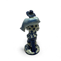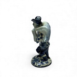 | Omschrijving | Een 20e eeuws Delfts aardewerken sculptuur, voorstelling van een boer met hoed, met een schaap over zijn schouder. Aan de onderzijde gemerkt plateelbakkerij Zuid-Holland, tevens gemerkt ‘Soil’ en serienummer 5665’. |