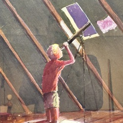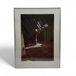 | Omschrijving | Zeefdruk op papier, voorstelling van jongen met sterrenkijker. Uit de serie 'Heerenveen', rechtsonder gesigneerd Siert Dallinga (Groningen 1954), gedateerd 1997, oplage 2/36. |