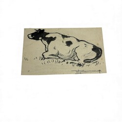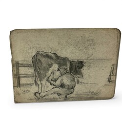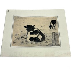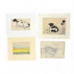 | Omschrijving | Lot van vier diverse tekeningen, pastel, potlood en inkt: twee met voorstelling van liggende koe, één met voorstelling van melkende boer en één met voorstelling van koolzaadveld. Allen door Simon Kamminga (Harlingen 1895 - Leeuwarden 1984), drie tekeningen gesigneerd links- en rechtsonder. |