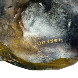 | Omschrijving | Een modern bronzen sculptuur,13 cm lang x 3,5 cm hoog. Een gestilleerde huisjes slak. Gesigneerd aan de onderzijde Theo Janssen (geb 1934). Nederlands van geboorte, maar in 1958 naar Nieuw Zeeland geëmigreerd. |