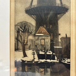 | Omschrijving | Kleurenets op papier, titel 'Molen de Stier'. Rechtsonder gesigneerd Tjeerd Bottema (Langezwaag 1884 - Katwijk 1978). |