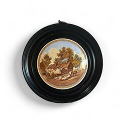 | Omschrijving | Lot van twee 19e eeuwse Engelse porseleinen plaquettes in zwarthouten lijstjes, met teksten ‘H.R.H. the Prince of Wales visisting the tomb of Washington’ & ‘The residence of Anne Hathaway, Shakespeares wife shottery n. Stratford on Avon’. |