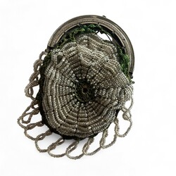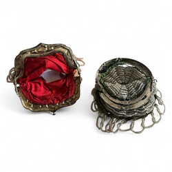 | Kavel | 1957. Twee antieke 19e eeuwse zilveren beursbeugels met kralentasjes, 1825 tot 1879 |