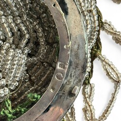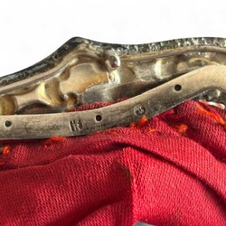 | Omschrijving | Twee antieke 19e eeuwse tweede gehalte (835/1000) zilveren beursbeugels aan kralentasjes, één rond model, meesterteken ‘S:T’ = J. Stout, werkzaam te Rotterdam vanaf 1822, jaarletter Q (1825). Met daarbij nog een exemplaar aan rood kralentasje, mr. Reitsma, Sneek/Heerenveen, jaarletter U (1879). |