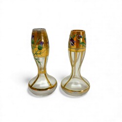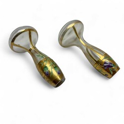 | Kavel | 2171. Twee art nouveau vaasjes met emaille beschildering, ca. 1910 |