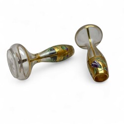 | Omschrijving | Lot van twee vroeg 20e eeuwse Franse vaasjes, art nouveau, gedeeltelijk verguld en met emaillebeschildering van bloemen (distels en hyacinten). Ongemerkt. |