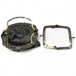 | Omschrijving | Lot van twee antieke 19e eeuwse tweede gehalte (835/1000) zilveren beursbeugels, één strak en vierkant model, meesterteken ‘MC:’ (?), en een opengewerkt beugeltje aan kralentasje, ‘WR7’ = Willem Roelfsema, werkzaam te Winsum van 1833 tot 1859. |