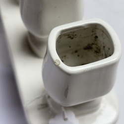| Conditie | Wit geglazuurde vaas: twee chips; tulpenvaas: gaaf. |