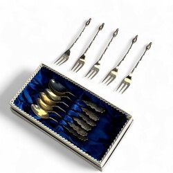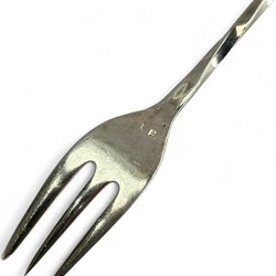 | Omschrijving | Lot divers zilver: vijf tweede gehalte (835/1000) zilveren gebaksvorkjes, getorste steel en met kroontje, gemerkt van Kempen & Begeer, ca. 1970. Met daarbij een set van zes tweede gehalte (835/1000) zilveren theelepels met getorste steel, model hanekam, mr. van der Meulen, Joure, periode 1984-1997. |