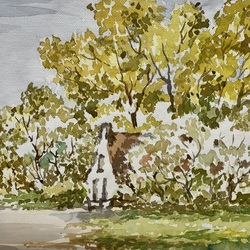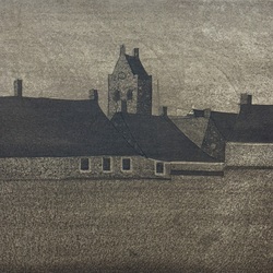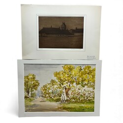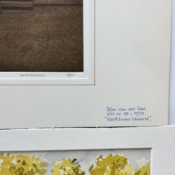 | Omschrijving | Aquarel op papier, voorstelling van een landschap, gesigneerd Sjoerd de Vries (Alkmaar 1909 – Franeker 1996). Met daarbij een ets, kerktoren Idaard, door Wim van der Veer (Leeuwarden, 1939). |