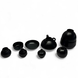 | Kavel | 1923. Zes zwart geglazuurde platelen vazen en twee kommen |