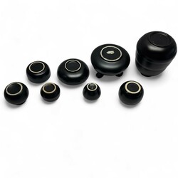 | Omschrijving | Zes zwart geglazuurde platelen vazen en twee kommen. Diverse makers en fabrikanten. oa Schoonhoven en drie oren vaas, mogelijk Eskaf. |