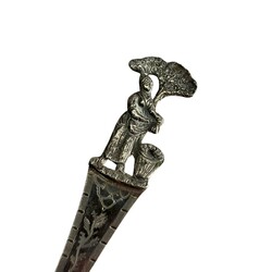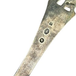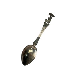 | Omschrijving | Een antieke 19e eeuwse tweede gehalte (835/1000) geboortelepel bekroond met vrouw bij fruitboom, 'den 9 maart 1862 is geboren Antje K. van der Zee'. Jaarletter Q (1850), meesterteken HZ123 = Hillebrand Jans Zwanenburg, werkzaam te Harlingen van 1837 tot 1880. |