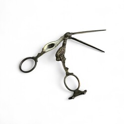 | Omschrijving | Een 20e eeuwse tweede gehalte (835/1000) Nederlands zilveren luierschaar in de vorm van een ooievaar, staand op schildpad, met kindje aan de binnenzijde. |