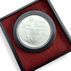 | Omschrijving | Een 20e eeuwse eerste gehalte (925/1000) zilveren verzamelmunt, Montréal 1976. Met aan de voorzijde Elizabeth, Canada 1976 & aan de achterzijde voorstelling van schermers. In cassette en kartonnen bewaardoosje. |