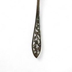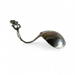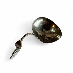 | Omschrijving | Lot divers Nederlands 19e en 20e eeuws tweede gehalte (835/1000) zilveren schepwerk: een cakeprikker, model ‘Kroontje’, jaarletter H (1967) meesterteken *N10 = Niekerk, Schoonhoven (1951-1970), een zilveren natfruitschepje met opengewerkte bak en steel, gemerkt Z/Z = Zaanlandse Zilversmederij, en een antieke 19e eeuwse roomlepel, met gegraveerde ronde bak met voorstelling van huisje en molen, schildje op de steel, bekroond met een staande leeuw. Meesterteken PC = Pieter Cool, Sneek, werkzaam van 1812 tot 1832, jaarletter T (1828). |