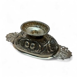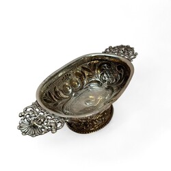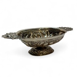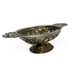 | Omschrijving | 18e eeuwse zilveren brandewijnkom versierd met drijfwerk van acanthusbladeren,Johannes Andringa,Leeuwarden 1756 |