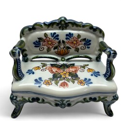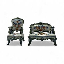 | Kavel | 1847. Aardewerken fauteuil en bankje, Tichelaar Makkum |