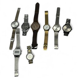 | Omschrijving | Acht diverse horloges, waaronder stalen dames polshorloge met goudkleurige details, gemerkt Juicy Couture, en gestileerd horloge met houten kast |