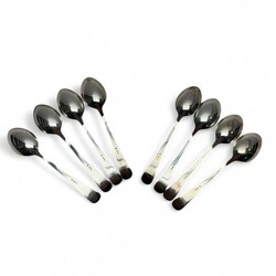 | Omschrijving | Lot van acht tweede gehalte (835/1000) zilveren dessertlepels, model Haags Lof. Mr. van Kempen & Begeer, jaarletter 1972. |