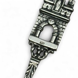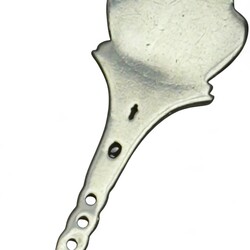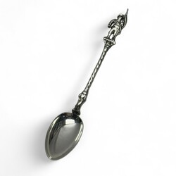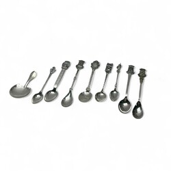| Omschrijving | Acht zilveren theelepels met steelbekroning, diverse gehaltes, 20e eeuw, waarvan zes met stadswapens: Bergen, Grouw, Tecklenburg, Veere, Leeuwarden en Brummen, één lepel bekroond door figuur met vaandel [verso ‘Innsbruck’], en lepel met wapen van Denemarken, alle 20e-eeuws, daarbij: tweede gehalte zilveren theeduimpje, meesterteken Familie Bolman, Leeuwarden, 1909-1932 |