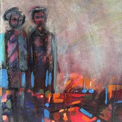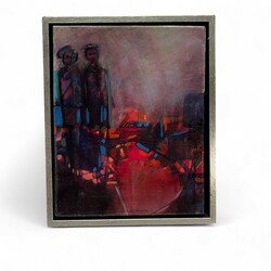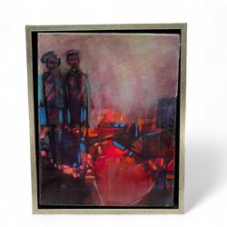 | Omschrijving | Schilderij gemengde techniek op doek, 30 x 24 cm. Twee figuren in landschap. Gesigneerd Ad van den Brink (geb 1944). Zie gallerie Doesburg |