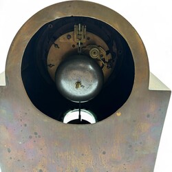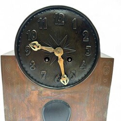 | Omschrijving | Een antieke vroeg 20e eeuwse pendule, Amsterdamse School / Jugendstil. Roodkoperen kast en bewerkte wijzerplaat. Ca. 1920. |