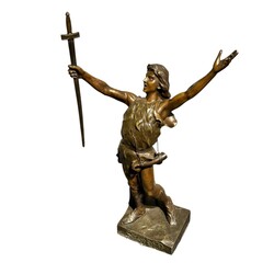 | Omschrijving | Groot bronzen beeld van een figuur met wijd gespreide armen met in de rechterhand een zwaard: ‘Siegfried’, gesigneerd ‘A. Cagna 1903’, mogelijk verwijzend naar de beeldhouwer Alphonse Cagna. |