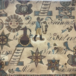 | Omschrijving | Een antieke 19e eeuwse aquarel rebus. Tekst is als volgt: ‘Vat de tijd en leer de wereld kennen. O' Zondig mens hoor mijn vermaan. Het sterven kan u niet ontgaan. Daarom leer sterven 't aller tijd. Dan kan men sterven zeer verblijd.’ Gedateerd 1837. |