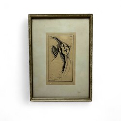 | Omschrijving | Een houtsnede, 16 x 8,5cm. De maanvis uit 1926. Gesigneerd in de druk Anton Pieck (1895-1987). In originele lijst. |