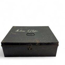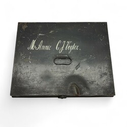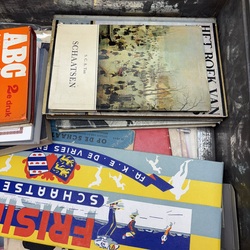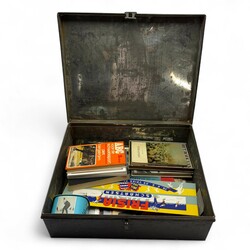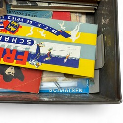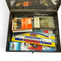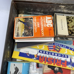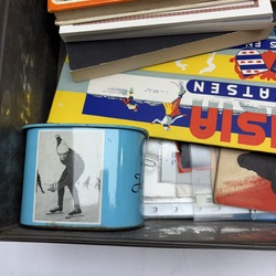 | Omschrijving | Blikken documentenkist gevuld met divers papierwerk, thema schaatsen. O.a. boeken, doosje Frisia schaatsen IJlst, boekje Elfstedentocht 1942, boekje Nooitgedagt 1940 etc. etc. |
