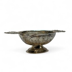 | Omschrijving | Zilveren brandewijnkom, versierd met drijfwerk en allegorische voorstellingen,, O.Schwartzwald,Leeuwarden 1832 |