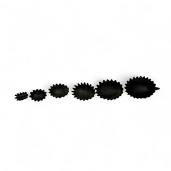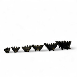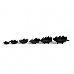 | Omschrijving | Een zesdelige 20e eeuwse bronzen design set in de vorm van egeltjes. Vermoedelijk ontwerp Walter Bosse, ca. 1950 |