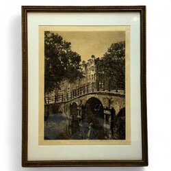 | Omschrijving | Ets op papier, voorstelling van Amstel/Herengracht Amsterdam. Rechtsonder gesigneerd Cornelis Brandenburg (Wormerveer 1883 - Amsterdam 1954). |