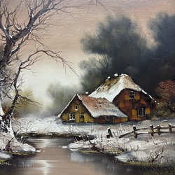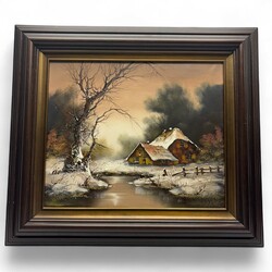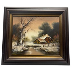 | Omschrijving | Schilderij, olieverf op doek. Winterlandschap met huisje. Linksonder gesigneerd Cornelis Bruinsma (Hattum, 1942) |