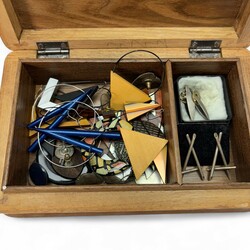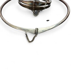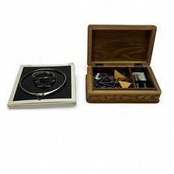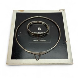 | Omschrijving | tweede gehalte zilveren halsketting en armband, ontwerp en uitvoering Elles Dortland, daarbij: houten kistje met verzameling moderne sieraden, veelal abstracte decors, 20e eeuw |