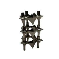 | Omschrijving | Metalen stapelkandelaar, bestaande uit drie drielichtskandelaars die op diverse niveaus aan/op elkaar geplaatst kunnen worden, ontwerp Fritz Nagel en Ceasar Stoffi, Duitsland, jaren ‘60 |