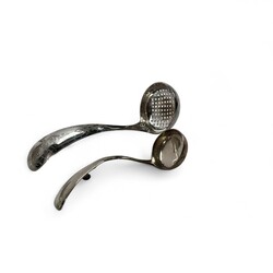 | Omschrijving | tweede gehalte zilveren dinercouvert met parelrand, meester Nederlandse Fabriek van Gouden en Zilveren Werken v/h J.A.A. Gerritsen, Amsterdam/Zeist, eerste kwart 20e eeuw, 3e gehalte zilveren kindercouvert, Duitsland (gekeurd halve maan met kroon), tweede gehalte zilveren strooilepel met gegraveerde steel, meester Adrianus Kuijlenburg, Schoonhoven/Rijswijk, jaarletter 1878, en tweede gehalte zilveren roomlepel, meester Reins Kornelis Zijlstra, Joure/Drachten, tweede helft 19e eeuw/begin 20e eeuw |