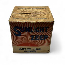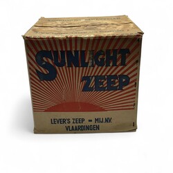 | Omschrijving | Doos 'Sunlight Zeep, Lever's Zeep Mij N.V. - Vlaardingen', gevuld met zeep -ongeopend- |