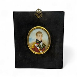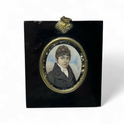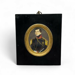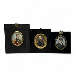| Omschrijving | Drie 19-eeuwse geschilderde Engelse portretminiaturen: twee van een heer in militaire kledij en één van een welgestelde heer, portretten niet gesigneerd, ook geen opschrift aan de achterzijde, in gezwarte lijstjes met messing monturen |