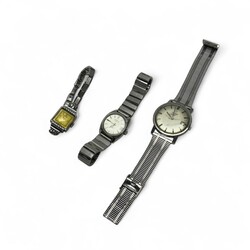 | Conditie | Omega in slechte staat: krassen op het glas, wijzerplaat versleten -opschrift slecht leesbaar-, andere twee horloges vertonen ook gebruikssporen |