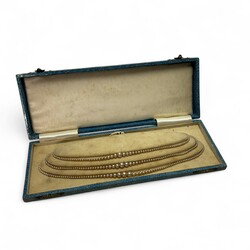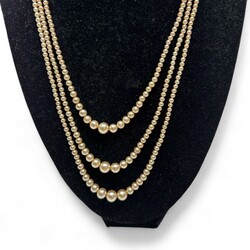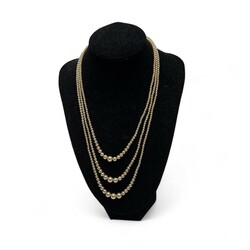 | Afmetingen | Driestrengs collier lengte circa 45 cm; kleine collier lengte 48 cm; lange collier met faux parels 82 cm |