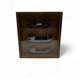 | Kavel | 1934. Drie scheepsmodellen in vitrinekastje |