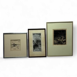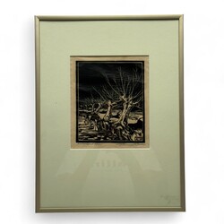 | Omschrijving | Drie stuks grafiek: houtsnede met knotwilgen, onduidelijk gesigneerd [A. Cormans?], Frans Jacob IJserinkhuijsen (1892-1959), litho, gesigneerd in potlood, en surrealistisch landschap, ets, gemonogrammeerd ‘CR’ en gedateerd ‘1-1078’ in de drukplaat, tevens met opschrift in potlood -vervaagd- |