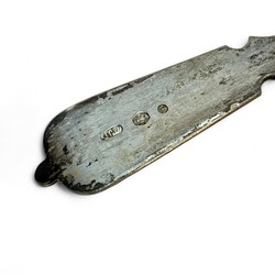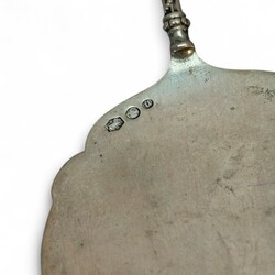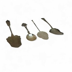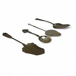 | Omschrijving | Een lot met drie antieke tweede gehalte (835/1000) zilveren taartscheppen en een gelegenheidslepel bekroond met een decor van Sint Joris en de draak. |