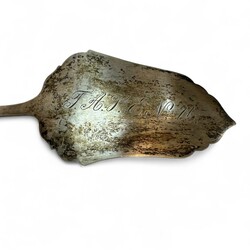 | Kavel | 1704. Drie zilveren taartscheppen en een gelegenheidslepel |