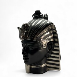 | Omschrijving | Een aardewerken Farao tafellamp. Deels met zilverkleurige glazuur, electrische ingericht. |